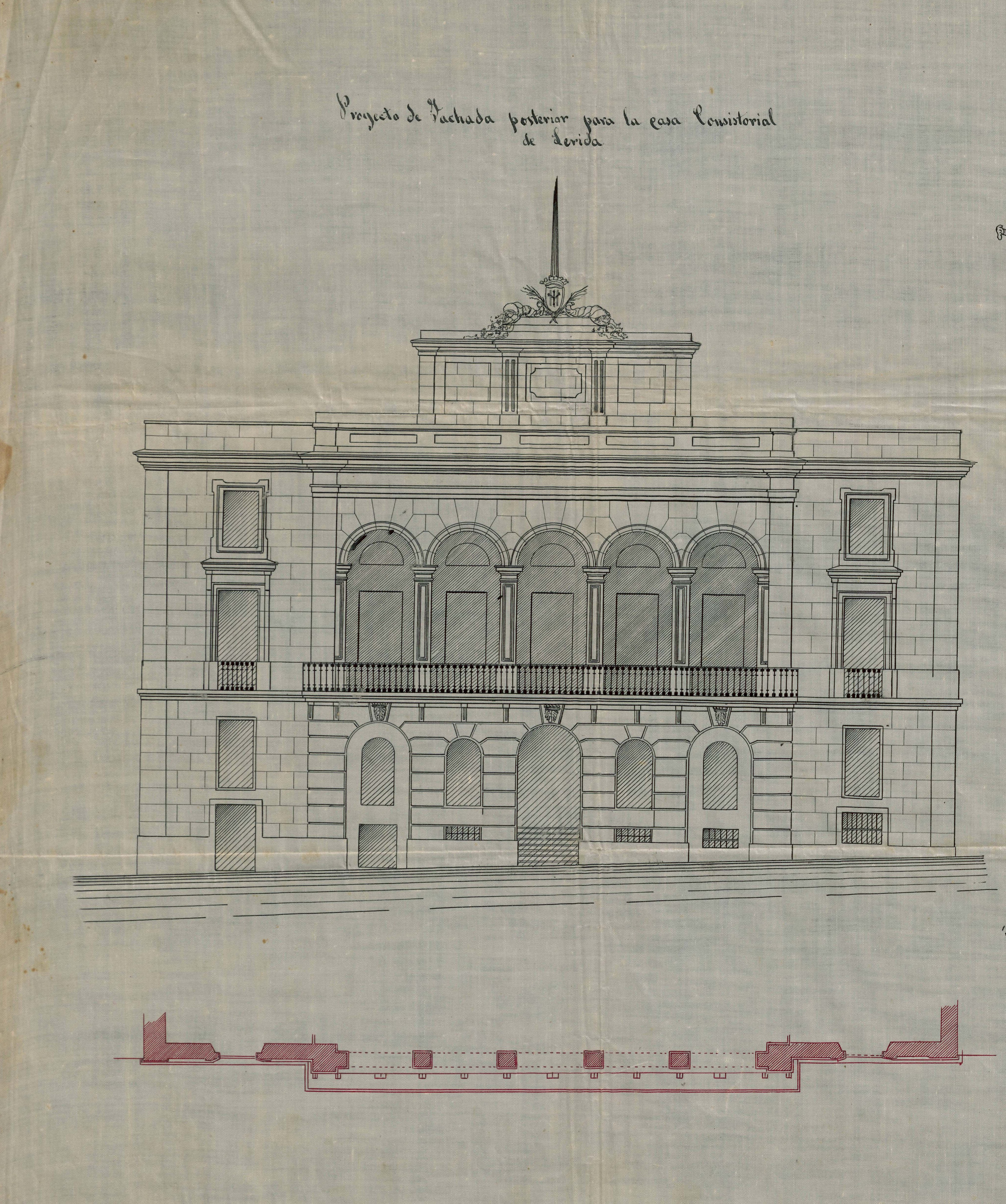 A mitjans de segle XIX la ciutat visqué un moment d’importants canvis urbanístics i socials. Segurament aquests factors foren els que motivaren a l’Ajuntament a fer més visible aquella part del l’edifici dotant-la d’un frontis digne, obrint així la ciutat al riu Segre, al que fins aquell moment havia girat l’esquena.