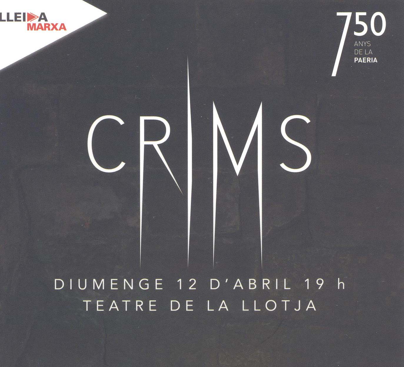 El proper diumenge 12 d’abril, a les 19h., al Teatre de La Llotja, en el marc dels actes del 750 aniversari de la Paeria tindrà lloc l’estrena de l’obra Crims, inspirada en els processos judicials del popularment conegut Tribunal de Coltellades de Lleida.