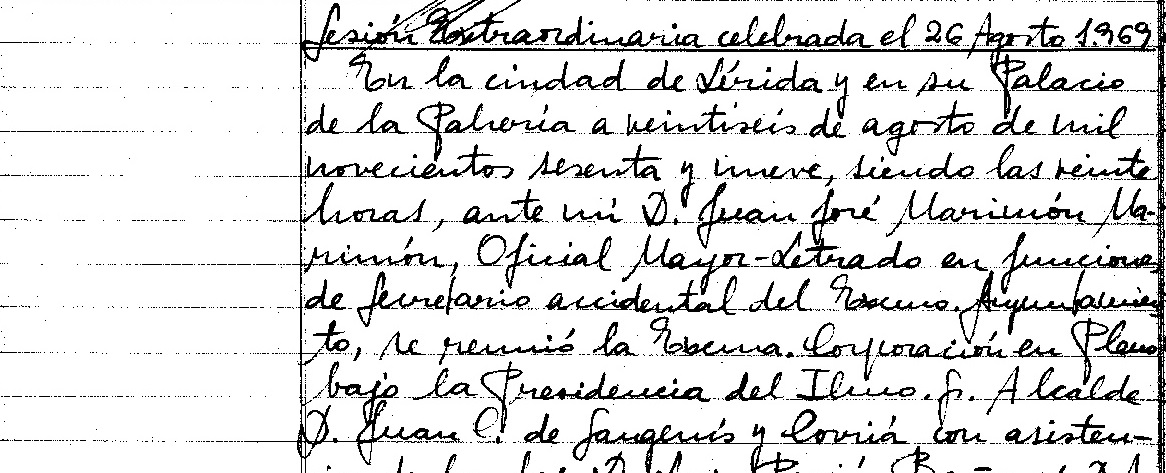 L’arxiu municipal de Lleida, amb el suport de la Secretaria General de l’Ajuntament de Lleida, posa a l’accés de tothom a través del web municipal les actes del Ple de l’any 1969. Actualment estan ja disponibles a la consulta en línia les actes del Ple el període comprés entre l’any 1883 i l’any 1969.