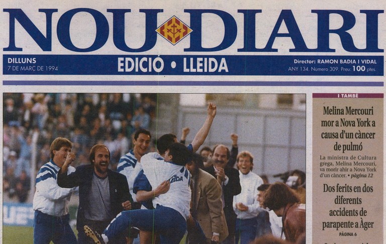 Però si per alguna cosa van destacar els anys 1993 i 1994 va ser pel retorn de la Unió Esportiva Lleida a la primera divisió del futbol nacional. I, sobretot es recorda la fita futbolística que va tenir lloc el 6 de març, quan l’equip de futbol donà la campanada guanyant al Reial Madrid al Camp d’Esports, derrota que allunyà als blancs dels primers llocs de la classificació.