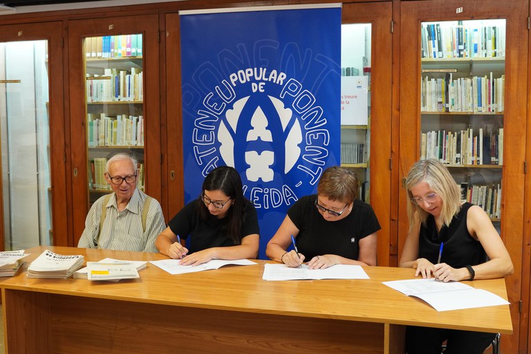 El passat dilluns 20 de juny, la tinent d’alcalde i regidora de Presidència, Jordina Freixanet, la presidenta de l’Ateneu Popular de Ponent, Carmina Pardo i la cap de l’Arxiu Municipal, Iolanda Enjuanes signaren la donació de 164 exemplars de la revista Ressò de Ponent a l’Arxiu Municipal.