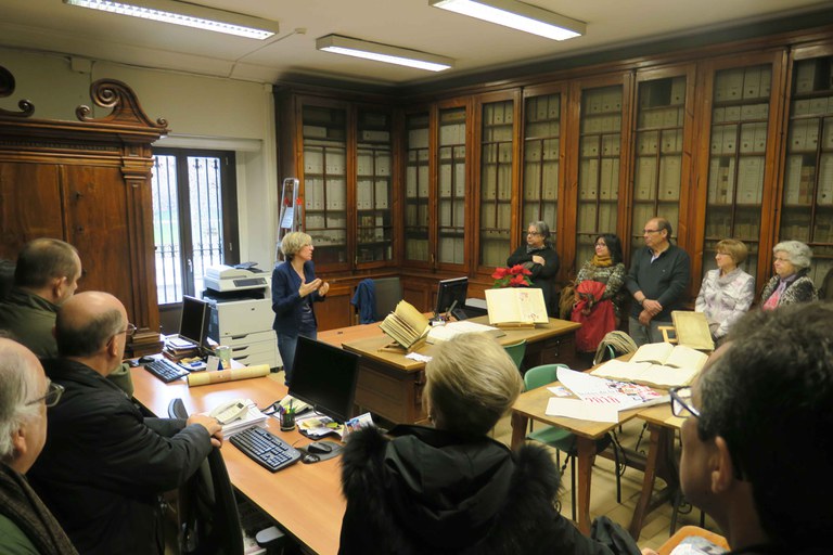 L’acte va consistir en un recorregut guiat pel Palau de la Paeria què incloïa la visita al saló de Plens, a les restes arqueològiques i en especial a l’Arxiu Municipal. Els assistents van poder contemplar alguns dels documents més rellevants que es conserven a l’Arxiu i conèixer de primera mà la tasca que realitzem els arxivers, no solament com a conservadors del patrimoni documental de la ciutat sinó també com a gestors documentals, desenvolupant funcions bàsiques d’organització de la documentació generada per la institució municipal a fi de garantir als ciutadans els drets d’accés i consulta documental.