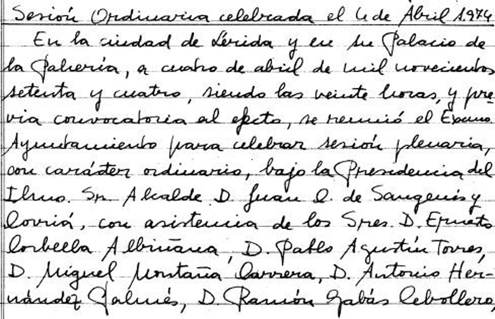 El Arxiu Municipal de Lleida, con el apoyo de la Secretaría General del Ajuntament de Lleida, pone al alcance de todo el mundo a través de la web municipal las actas del Pleno del año 1974. Actualmente, están ya disponibles para la consulta en línea las actas del Pleno del periodo comprendido entre el año 1883 y 1974.