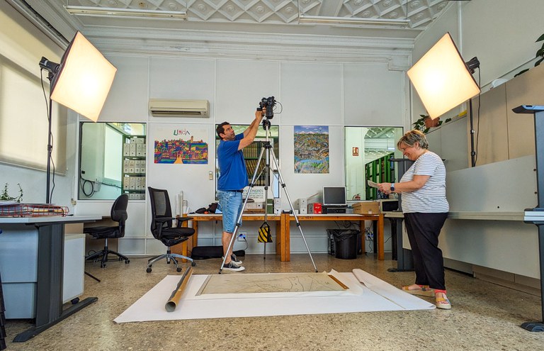 Con motivo del día mundial de la fotografía, que se celebra cada 19 de agosto, os informamos que hace unas semanas, el Arxiu Municipal, con la colaboración del fotógrafo Jordi V. Pou, estuvimos fotografiando planos, muchos de ellos de gran formato, de finales del siglo XIX y principios del s. XX, los cuales tanto por su relevancia para el conocimiento de la evolución urbanística de la ciudad, sus medidas, los soportes, mayoritariamente de papel vegetal o papel de tela, y el estado en que se encuentran los originales, fueron necesario reproducir por este medio, garantizando de este modo el acceso a ciudadanos e investigadores que puedan estar interesados.