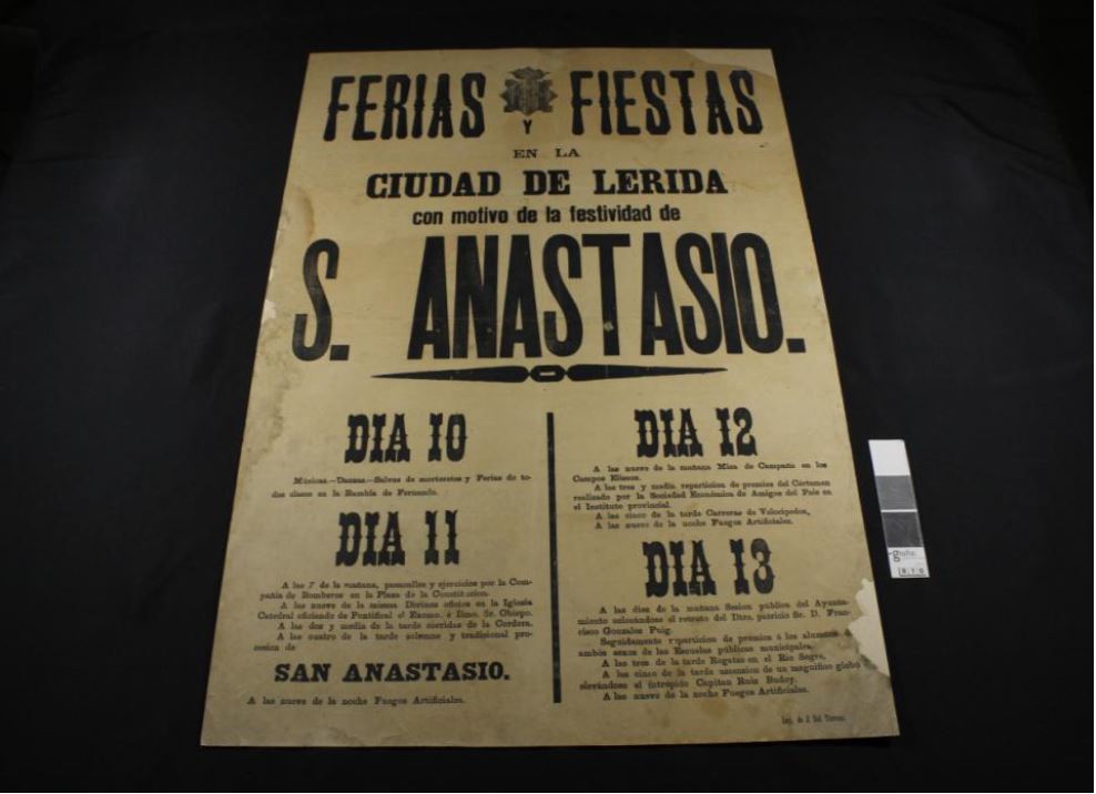 El Arxiu Municipal conserva una interesante colección de carteles de las actividades llevadas a cabo desde el Ayuntamiento, entre los cuales destacan especialmente los carteles de las fiestas mayores, a través de los cuales se puede ver la evolución del cartelismo y de la sociedad en el paso de los tiempos. El más antiguo que conservamos es el de la Fiesta Mayor de San Anastasi del año 1865.