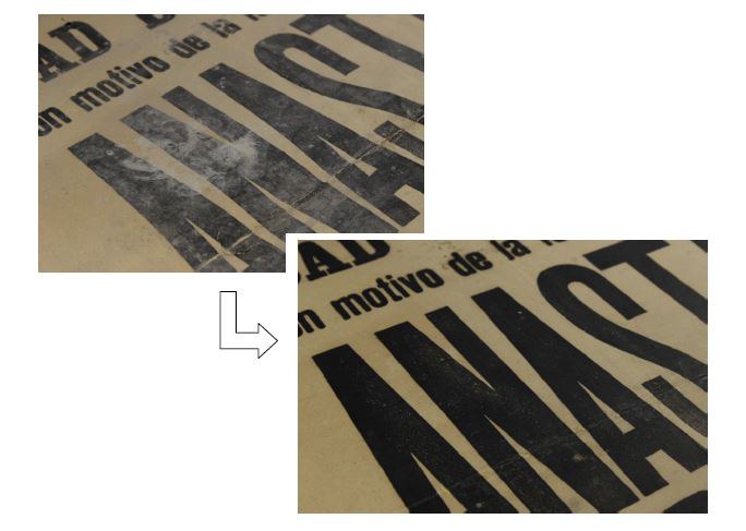 El cartel de las fiestas de 1888 fue imprimido en la Imprenta de Sol y Torrens y se trata de un cartel de grandes dimensiones, mide 94 x 65,5 cm, que se encontraba en un estado de conservación bastante deteriorado, con pérdidas de material, afectaciones por humedades y rasgados en los laterales, y que hacía necesario un tratamiento profesional, el cual ha ido a cargo de la restauradora Núria Vila del taller Grafia: conservació-restauració.